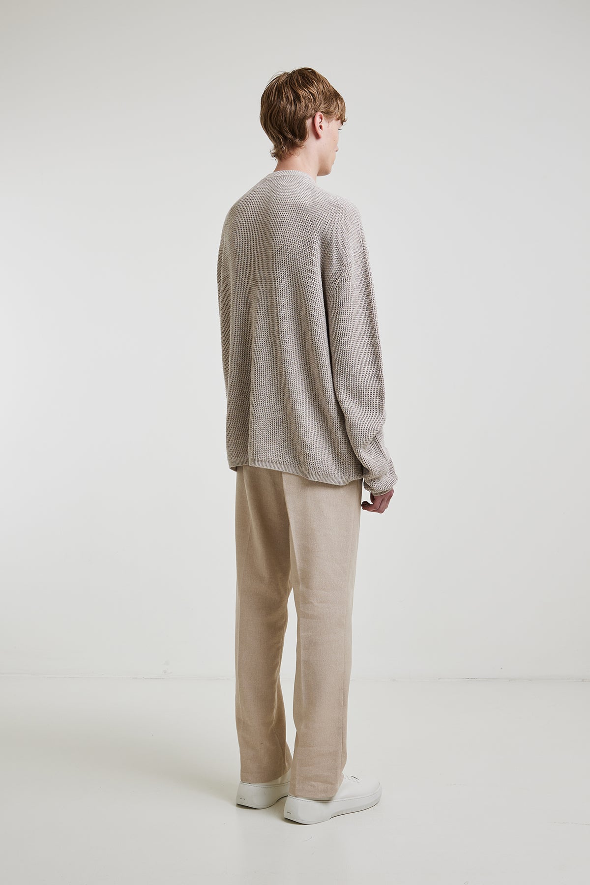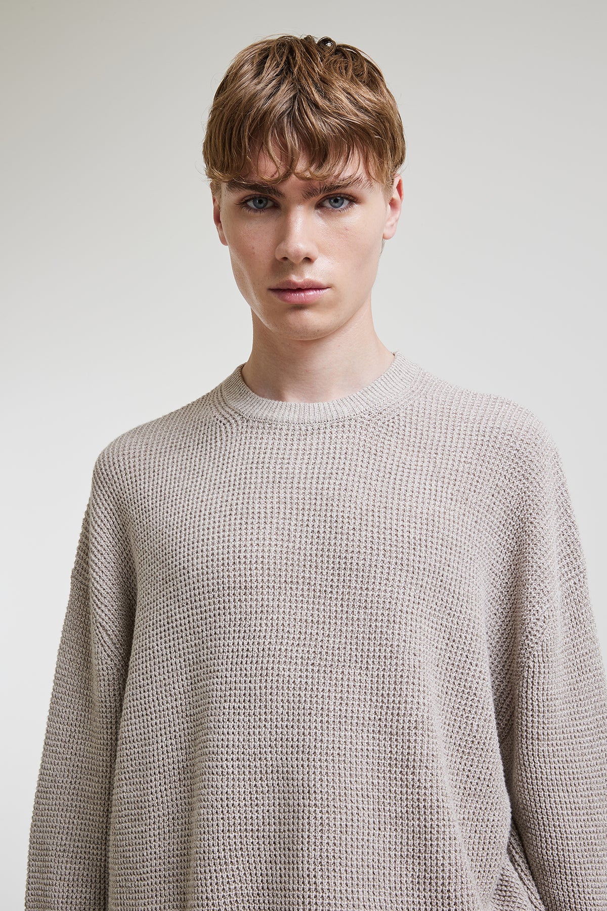 Knitwear crew-neck pullover made with a linen-cotton blend yarn and with a waffle stitch texture. With long sleeves and dropped shoulders. Regular fit.